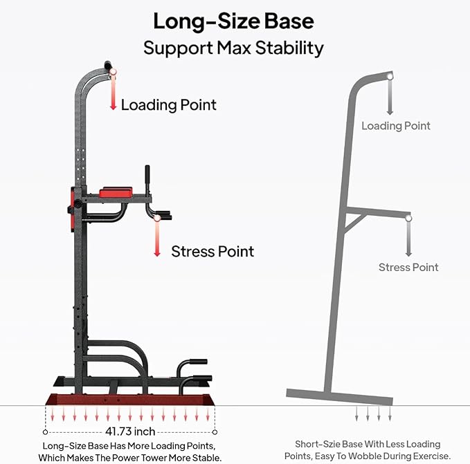 - Double Stability & Safety Locknut - Our Power Tower owns 41.73 inches long-size H-shape base. The long base provides more loading points. With 4 Wider anti slip foot covers and safety locknut, increasing the contact area and provides double stability.In order to prevent the nut from falling off in case of vibration, we adopt the locknut to keep the screw to be tightened.