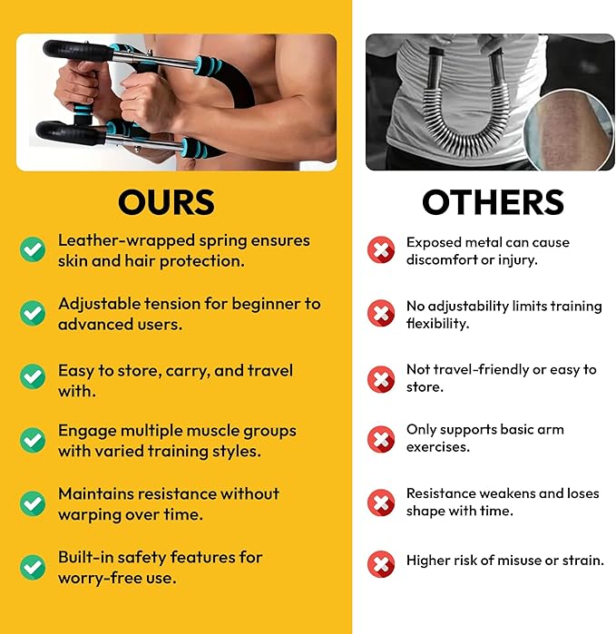 - Heavy-Duty Steel Construction – Built with premium alloy steel and dual springs for intense arm exercises and long-lasting durability.