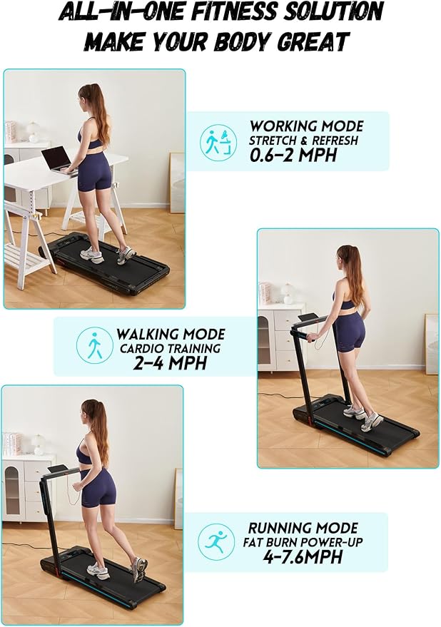 - 💪 2.5HP Quiet & Powerful Motor (Supports up to 300 lbs): Unlike noisy, underpowered treadmills, our low-noise motor runs under 45 dB and supports speeds up to 7.6 MPH. Whether walking, jogging, or incline training, it delivers smooth, reliable performance for users up to 300 lbs.