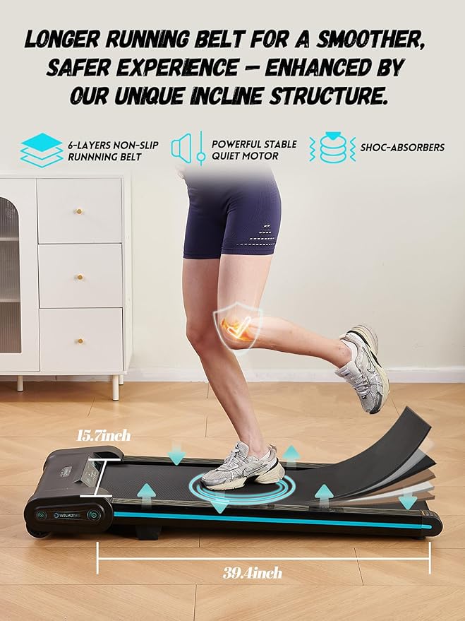 - 🏔️ Exclusive Fold-Up Incline Design – Unlike Any Other Walking Pad: The Welmotive treadmill features a unique fold-up motor cover that activates its incline function—instantly transforming a flat walking pad into a hill-climbing treadmill. Enjoy dynamic workouts with real elevation changes that standard models simply can’t offer.