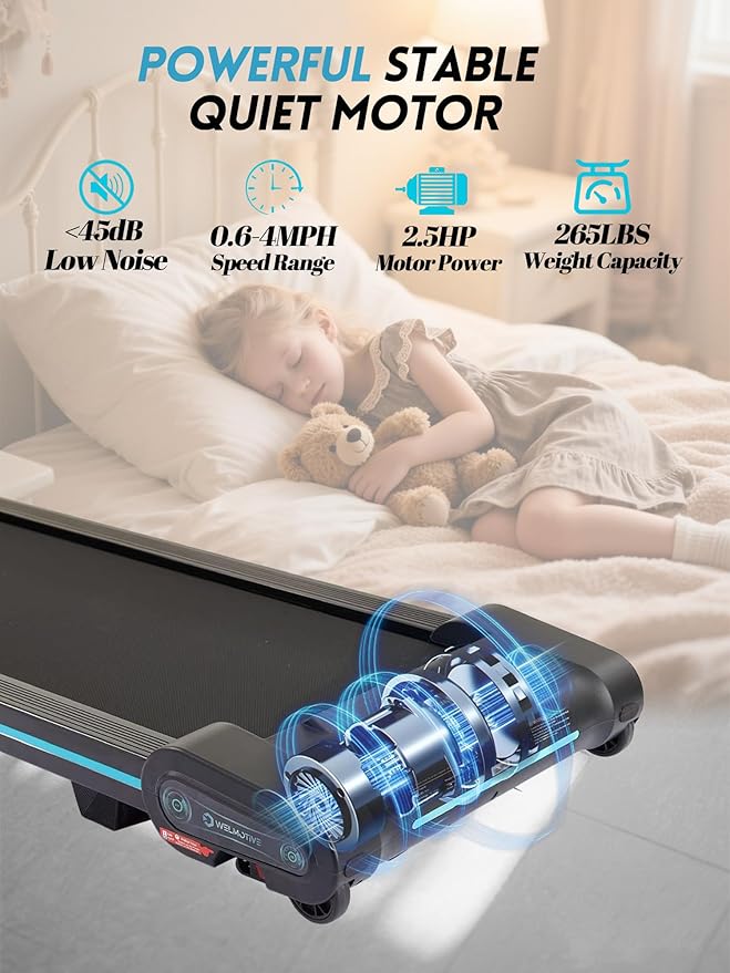 - 💪 2.5HP Powerful & Whisper-Quiet Motor (Supports 330 lbs): Built with a durable, low-noise motor, this treadmill runs smoothly at speeds up to 4 MPH while staying under 45 dB—quieter than most home treadmills, ideal for apartments and shared spaces. Supports users up to 330 pounds.