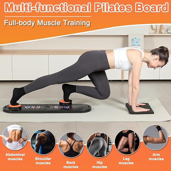 - Multi-functional Pilates Reformer Board: One board for total body exercise needs! Designed for shaping and burning fat, stamina building, it combines Pilates, ab wheel, push-up handle, resistance band and balance board in one. Supports abdominal, hip, leg, arm and other parts of the workout, it is your best choice for efficient workout.