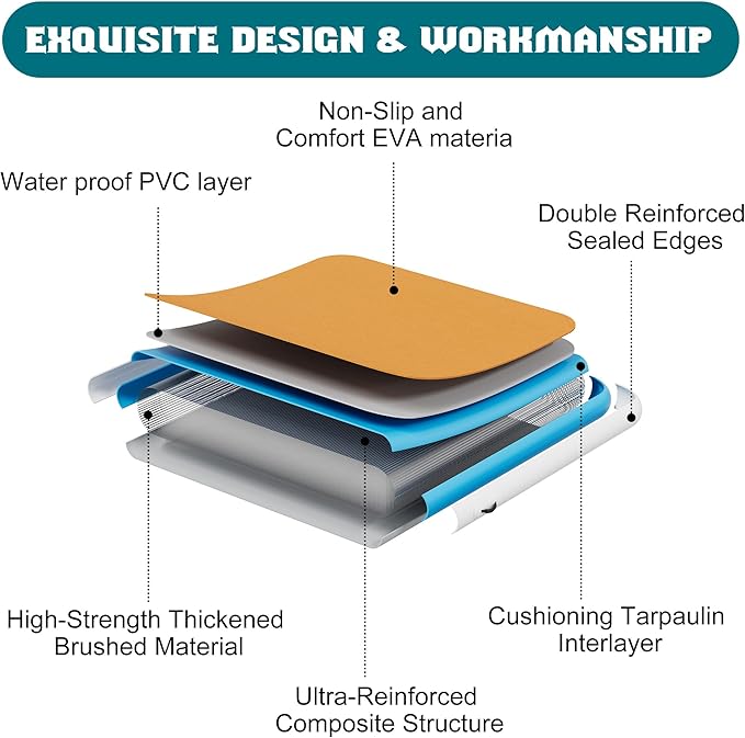 - 【NON-SLIP EVA MATERIAL】The EVA surface ensures excellent traction, even when wet, for safe and stable use. Its soft, cushioned texture adds comfort, making it ideal for lounging, sports, or group activities on the water.
