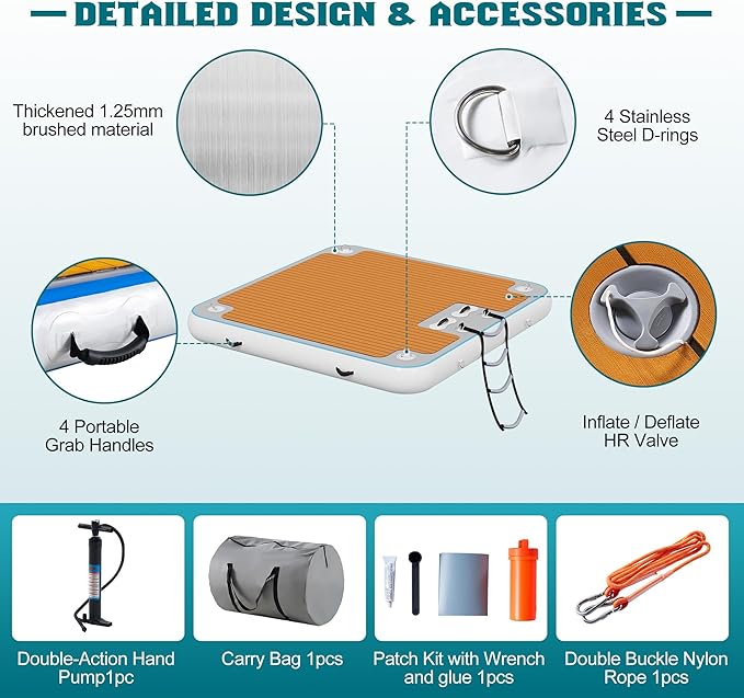 - 【PERFECT FOR VARIOUS SETTINGS】The floating platform offers endless possibilities. Use it for beach relaxation, poolside fun, lake fishing, or as a docking station for paddleboards and jet skis, enhancing every water activity!