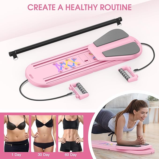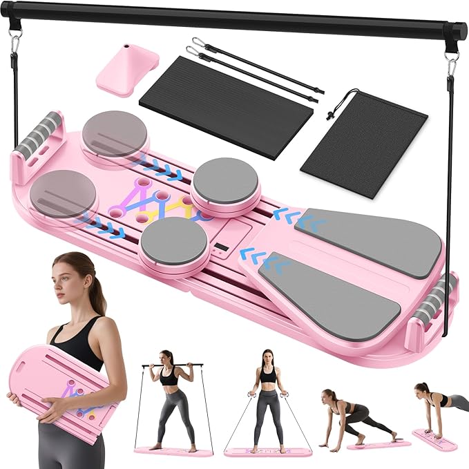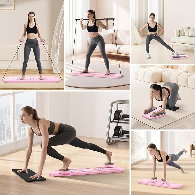 Foldable Pilates Board for Home Workout, 2025 New Pilates Reformer Set with Smart Timer, 7-in-1 Multifunctional Pilates Board Fitness Board, Pilates Reformer Machine Pilates Sliding Board