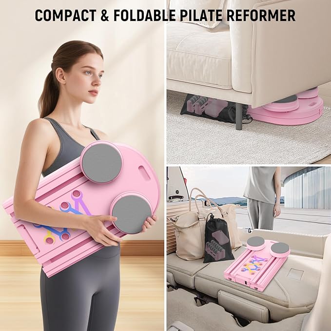 - 【Compact and Foldable Design】This pilates reformer boasts a space-saving foldable design, making it easy to store and transport—perfect for small apartments, dorms, and busy households. Folds in seconds and store after use, takes up no space, and you can easily tuck it under the bed, sofa or any other corner. What's more, carrying bag included - you can get fit wherever you are!