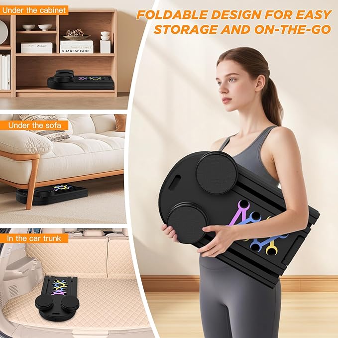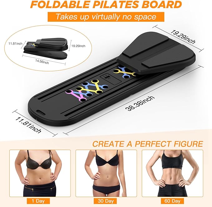 - 【FOLDABLE COMPACT PILATES BOARD】This Pilates reformers features a foldable design that saves space and is easy to carry, making it ideal for small apartments, dorms, or busy households. You can do leg presses, core work, arm exercises, and more, all in one place. It's easy to store under your bed and sofa, or any other corner after use and it doesn't take up any space at all