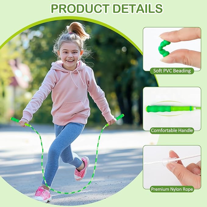 - Pliable Material: Kids jump rope for age 8-12 is made of lightweight pliable material, so they’re not hard. It doesn’t hurt when hitting your legs.Great for outdoor play this summer