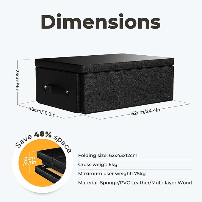 Pilates Box for Reformer 26 x 15 x 9.5 Inch Pilates Reformer Box, Premium PU and Wood Pilates Sitting Box, Home Use Pilates Bed/Pliates Reformer Machine Accessories, Black