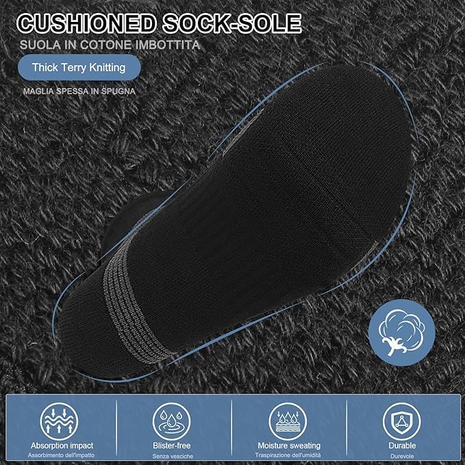 - CUSHIONED & Anti blister Athletic Socks: Thick terry knitting sock-sole design can reduce the pressure on the soles of the feet, absorb the impact on the feet during exercise, improve comfort and protect the soles of the feet from injury!