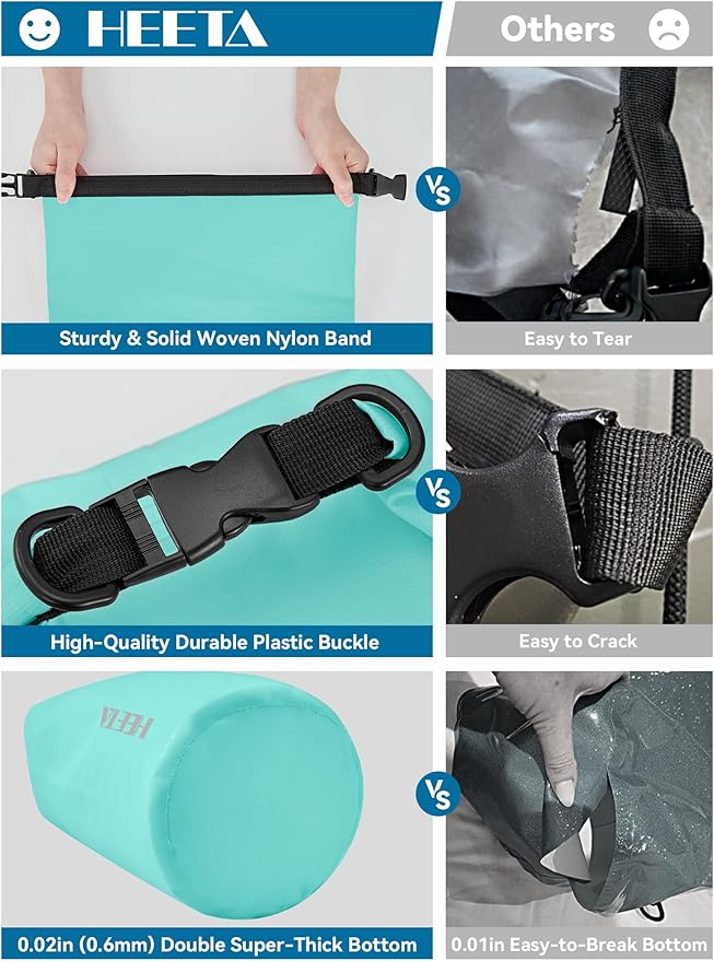 - Multifunctional - Equipped with adjustable shoulder straps for shoulder carrying and backpack, our dry bag is very convenient for different occasions like boating, rafting, kayaking, hiking, camping, fishing, mountaineering, etc. The lightweight dry bag won't weigh down your arms or shoulders