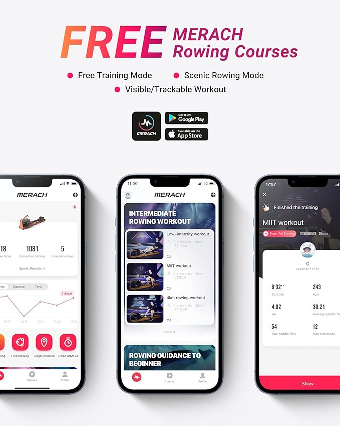 - Dual Resistance System Rower: This rower is a combination of water and magnetic resistance rowing machines and has a real paddling experience at the same time. It has 16 levels of precise electromagnetic resistance adjustment that improve the upper limit of resistance and increase the fat-burning effect. Lifetime MERACH Membership: By downloading th