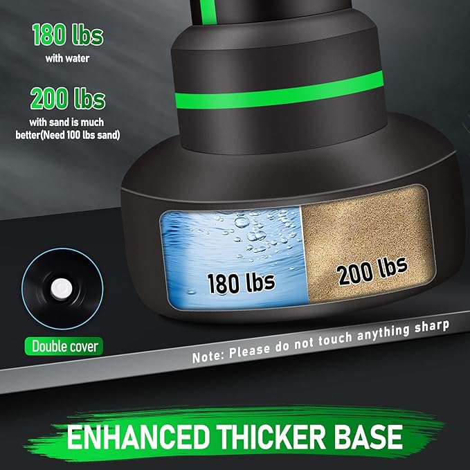 - Widened Base Heavy Punching Bag: 27.6'' widened base design combined with a low center of gravity and anti-slip features minimizes tipping during intense workouts. Simply fill the sturdy base with water or sand for instant stability. Freestanding punching bag allows for flexible placement in home gyms, garages, basements, or living rooms