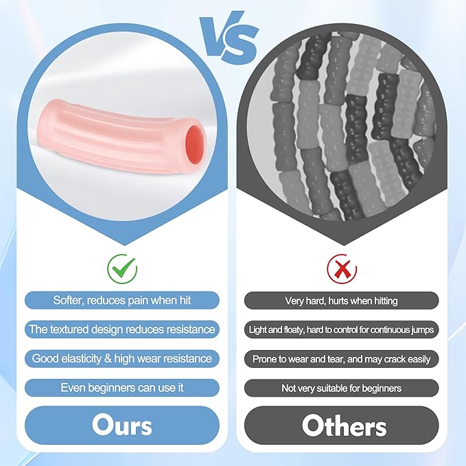 - Upgraded Soft-Beaded Jump Rope: Featuring softer beads and a segmented design, these fitness jump ropes reduce the sting of accidental hits while jumping. This makes them especially beginner-friendly.