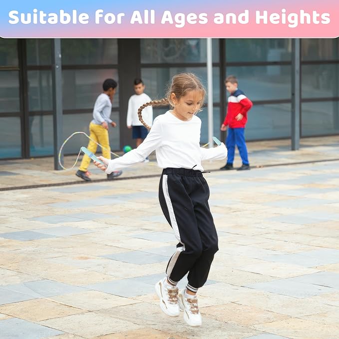 Coolrunner 9 FT Upgraded Kids Jump Rope, 2PC Soft Beaded Skipping Rope with Soft Anti-slip Handles, Adjustable Jumping Rope for Kids Adults, Plastic Segmented Long Enough