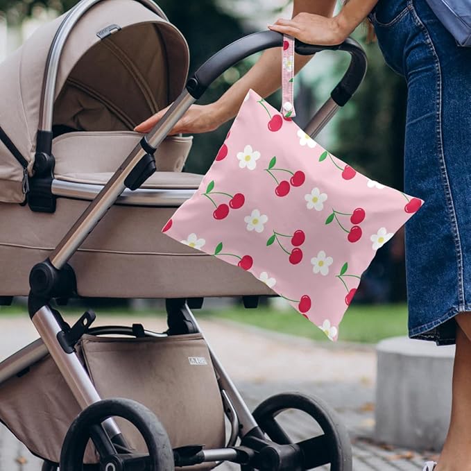 4 Pack Cute Flower Bow Cherry Wet Bag Waterproof Washable Reusable Wet Dry Bag for Swimsuit Bathing Clothes Soiled Items Cloth Diaper Travel BeachYoga Gym Toiletries Travel Beach Essentials