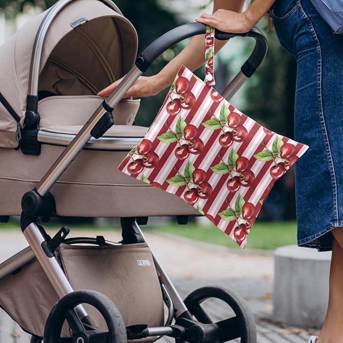 4 Pack Cute Stripes Checkered Cherry Wet Bag Waterproof Washable Reusable Wet Dry Bag for Swimsuit C Dirty Clothes Cloth Diaper Travel Beach Pool Yoga Gym Toiletries Travel Beach Essentials