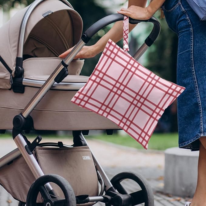4 Pack Cute Cherry Checkered Wet Bag Waterproof Washable Reusable Wet Dry Bag for Swimsuit Pump Parts Dirty Clothes Bathing Cloth Diaper Travel Beach Pool Yoga Gym Toiletries Travel Beach Essentials