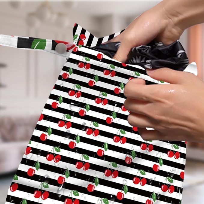4 Pack Cute Checkered Stripe Cherry Wet Bag Waterproof Washable Reusable Wet Dry Bag for Swimsuit Bathing Dirty Clothes Cloth Diaper Travel Beach Pool Yoga Gym Toiletries Travel Beach Essentials
