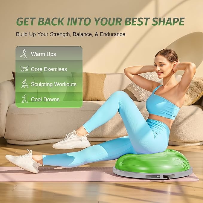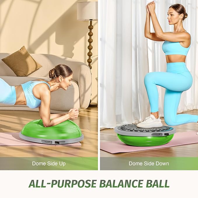 - Yoga Ball Included: This set includes not just the half dome balance ball, but also a separate 25.6 in. inflatable yoga ball for more workout options. Alternate between dynamic half-ball exercises one day and restorative full-ball stretches the next