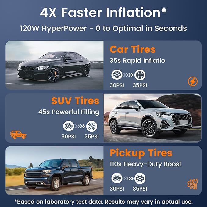 - [Fast Inflation for SUP, Car & Bike] Unleash powerful 400L/min airflow! This paddleboard pump electric portable inflates car tires (0-36 PSI) in just 4 minute, bike tires (0-120 PSI) in 1 minute, and crucially, your SUP/paddleboard from 0-12 PSI in only 12 minutes (reaches half capacity in just 1 minute). Perfect as a sup inflator pump electric for boards, plus cars, trucks, bikes, motorcycles, balls, tents, kayaks, and air beds.