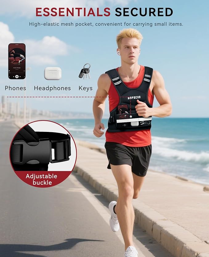 - 【Unisex Design for Men & Women】Ergonomic fit with adjustable straps and quick-lock buckles ensures a snug, bounce-free fit for running, walking, gym workouts, HIIT or CrossFit sessions.