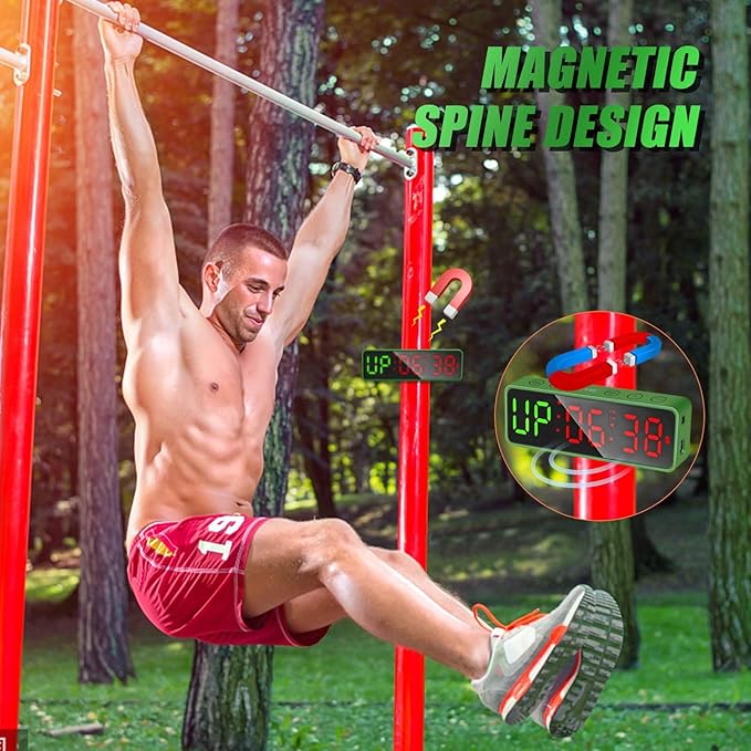 - ššØš°šš«šš®š„ ššš š§ššš¢š šš¢š š¢ššš„ šš„šØšš¤: SLEVIO sports timer case is wrapped in non-slip rubber, 0.8*1.6 inches built-in magnetic spine and large digital timer, no matter how much shaking you make during exercise, it can be firmly sucked on any metal (steel) surface, and at the same time let you can clearly see the time on the screen.