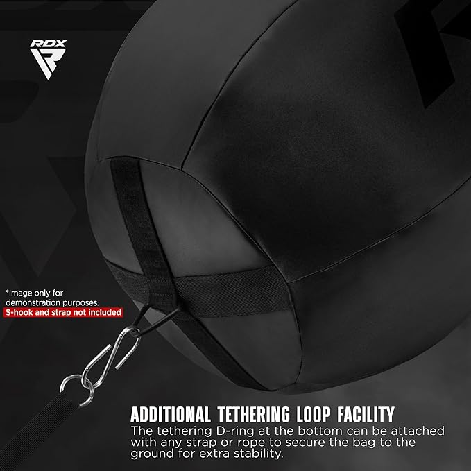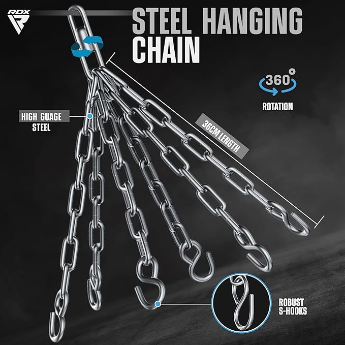 - STURDY 6-PANEL CHAIN FOR HANGING STABILITY–Tired of chasing an unstable bag? The RDX punch bag features a 6-Panel Chain with Integrated 360° Swivel that keeps the bag balanced and stable. This prevents unnecessary sway, giving you a steady target for calculated uppercuts and body shots. The tethering D-ring at the bottom can be attached with any strap to create an immobile striking surface, helping you focus on form and power. So, arm yourself with RDX and stay laser-focused on each strike!
