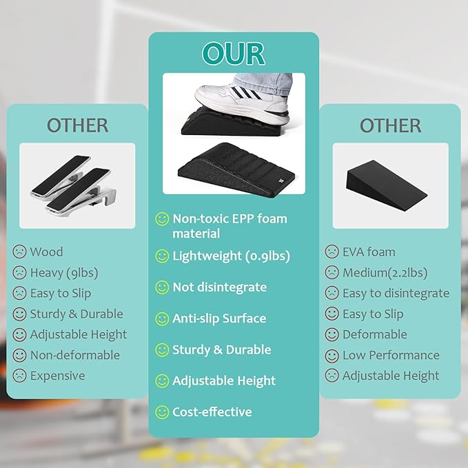 - 【Best Material & Universality & Portability】- Recyclable, Lightweight, And Sturdy Epp Is More Suitable For Achilles Tendon Stretchers Than Wood Or Metal. It Enables You To Use The Physical Therapy Wedge Kit For Squats, Strengthening Stretches, And Weightlifting To More Effectively Target Muscles. The Use Of Calf Extension Wedges Is Equally Effective For Beginners, Advanced Athletes, And Those Undergoing Physical Therapy. This Lightweight And Compact Set Is A Portable Squat Board That You Can Use At Home, In The Gym, Or Even Outdoors.