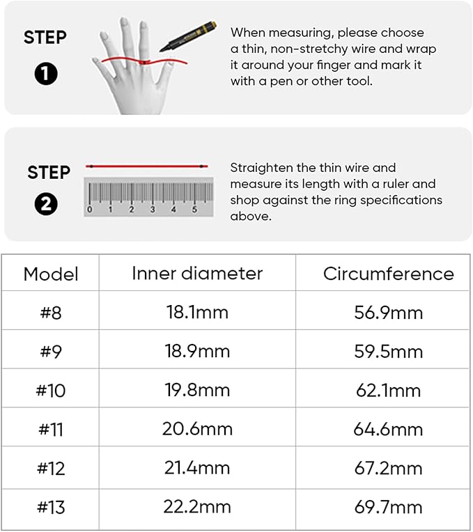 - Accurate Sizing, Comfortable Fit:Before purchasing, we highly recommend buying our ring sizer to ensure the perfect fit for your finger. Precise sizing ensures a comfortable wear, avoiding any discomfort from an ill-fitting ring.