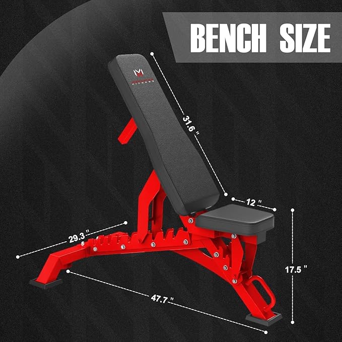 - Quick Adjustments, Effortless Use: This adjustable bench offers 9 backrest positions and 4 seat positions. The C-shaped lock catch design eliminates the need for pin adjustments, making position changes quick and easy, saving up to 90% of adjustment time. Whether you're performing bench presses, sit-ups, or other strength training exercises, you can quickly find the optimal angle and focus on achieving the best