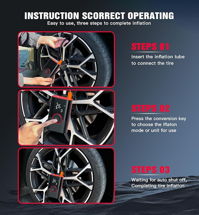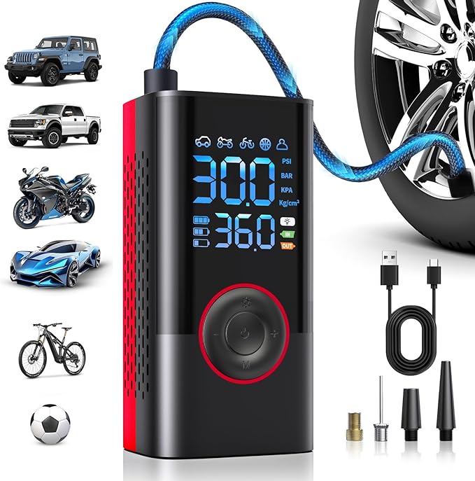 - ๐ใ๐๐ฐ๐ฐ๐๐ฟ๐ฎ๐๐ฒ ๐๐๐ ๐๐ถ๐๐ฝ๐น๐ฎ๐ ๐ฎ๐ป๐ฑ ๐๐๐๐ผ๐บ๐ฎ๐๐ถ๐ฐ ๐ฆ๐๐ผ๐ฝใThe car tire air pump comes with a built-in pressure gauge and LCD screen that allows you to accurately monitor real-time tire pressure. The preset tire pressure function allows the pump to automatically shut off when the correct pressure is reached, preventing over-inflation and ensuring optimal tire performance and safety