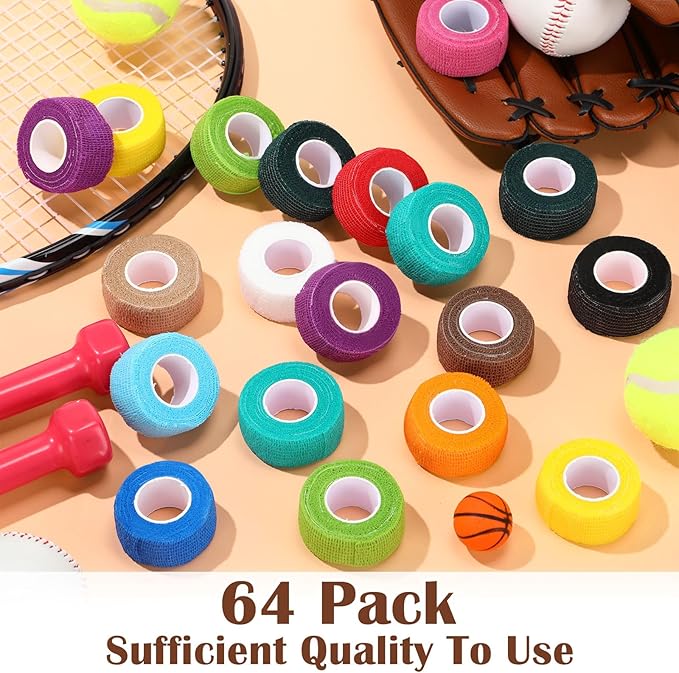 Treela 64 Pack 1" x 5 Yards Self Adhesive Cohesive Bandage Wraps, Elastic Breathable Athletic Tape, Flexible Self Adherent Bandage Rolls for Wrist, Ankle, Fingers, Sports & Pets (Multi Color)