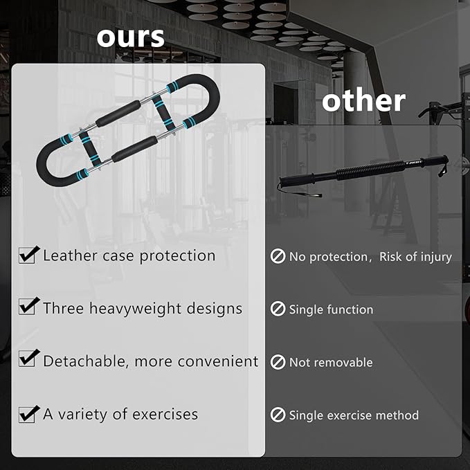 - 🔄 Multifunctional Power Training Bar: Unlike traditional arm workout devices, this strength training bar offers a versatile workout experience. Whether you're training your wrists, chest, back, legs, or shoulders, it's a safer and simpler alternative to heavy gym equipment—perfect for building strength and muscle definition