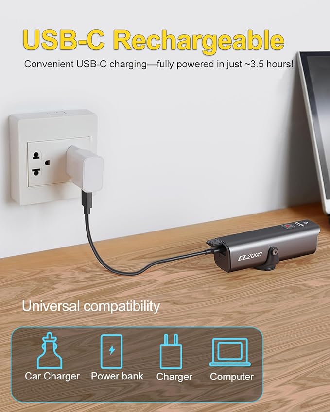 - Adaptive Runtime & Auto-Detect Tech:High (2000LM): 2H | Mid (800LM): 4H | Low (400LM): 8H Smart motion sensing sleeps after 2 min stillness, wakes instantly when riding.