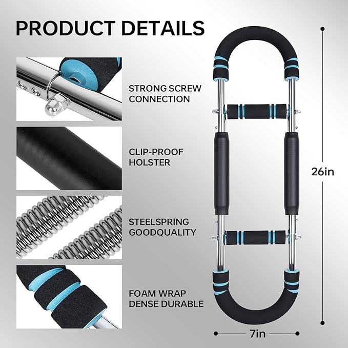 - 【Premium Metal Spring】 Arm workout equipment with high-strength steel springs deliver smooth resistance without jerking, reducing joint strain. Features thickened foam handles with leather-wrapped protection and 360° anti-slip grip for injury-free workouts. Passed 100,000+ durability tests