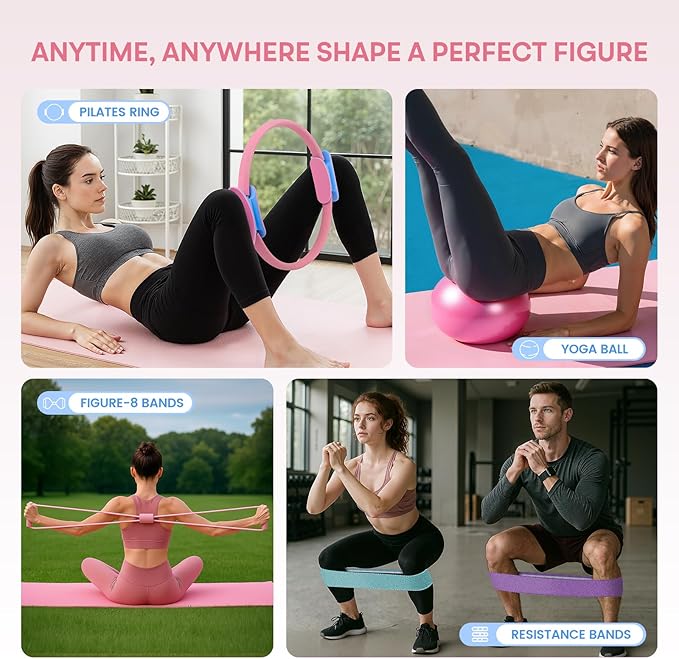 - Convenient pilates home workout kit: Meet various demands. suitable for beginners, physical therapy, pelvic floor muscle exercise, relieve fatigue, back pain relief, etc. Lightweight and portable design. One can exercise at home or elsewhere