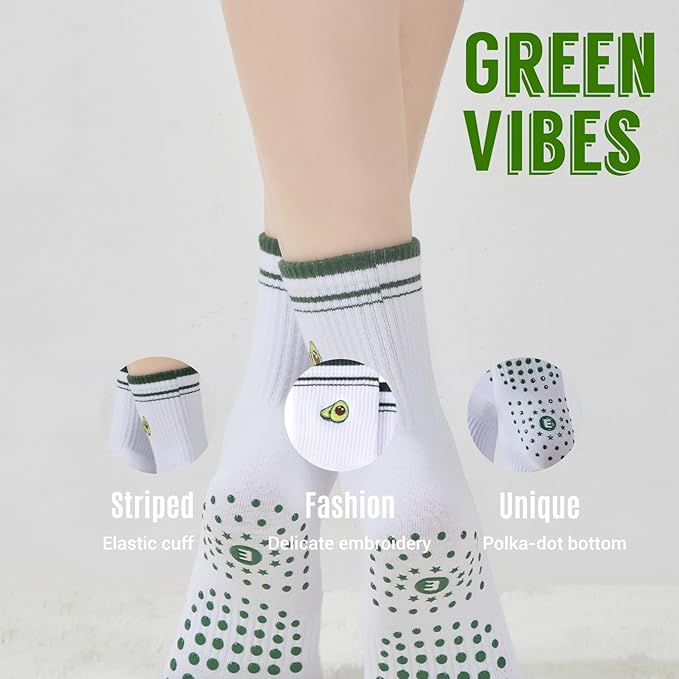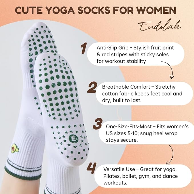 EUDOLAH Cute Yoga Socks for Women Pilates Barre Breathable Non-Slip Crew Grip Sock With Stripes Anti-friction Athletic Socks