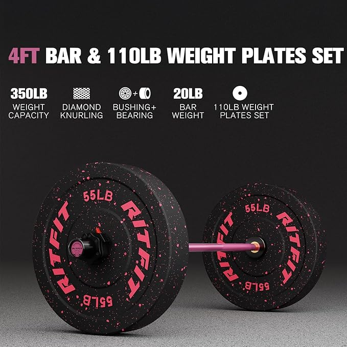 RitFit Barbell Weight Set - 4/6FT Olympic Barbell with Weight Plates (55-275LB Total) - Weightlifting Equipment for Squats, Curls, Deadlifts, Presses, Hip Thrusts