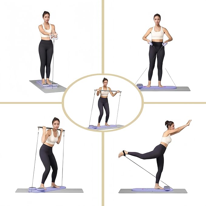 - [Smart fitness companion to help you achieve all your goals] Built-in counter/timer (AAA batteries not included) can easily track training progress and monitor the number and duration of training. You can customize the training program according to your needs such as core muscle training, balance improvement or full body shaping. Full set of equipment is included: Pilates bar, resistance band, balance board and exercise guide - ideal for family and friends as a gift or family fitness.
