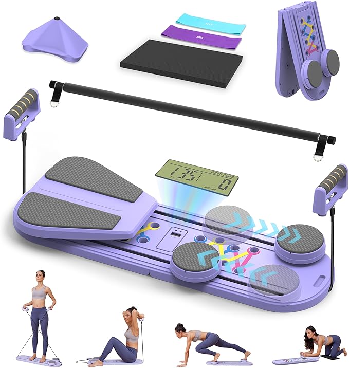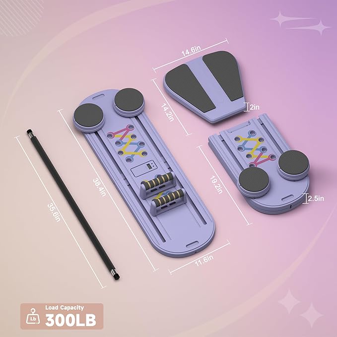 - Multifunctional Pilates Board: Are you still worried about expensive and single-function Pilates equipment? The multifunctional Pilates board meets full-body workout needs. It includes a core trainer, resistance bands, push up board, balance board, abdominal roller, and plank support. Targeting the abdomen, buttocks, legs, arms, and other muscle groups, it also comes with a training manual featuring 20 exercises suitable for all fitness levels, from beginners to advanced athletes