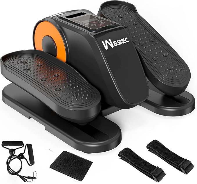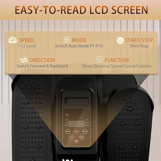 - 【LCD Display & Quiet Workout】With silent wheels and sound deadening system, the elliptical works, making it perfect for home and office use. Its compact design and portable features allow you to workout anytime and anywhere. The portable under-desk elliptical comes with an LCD display that shows speed, distance, counter, time and calories in real time.
