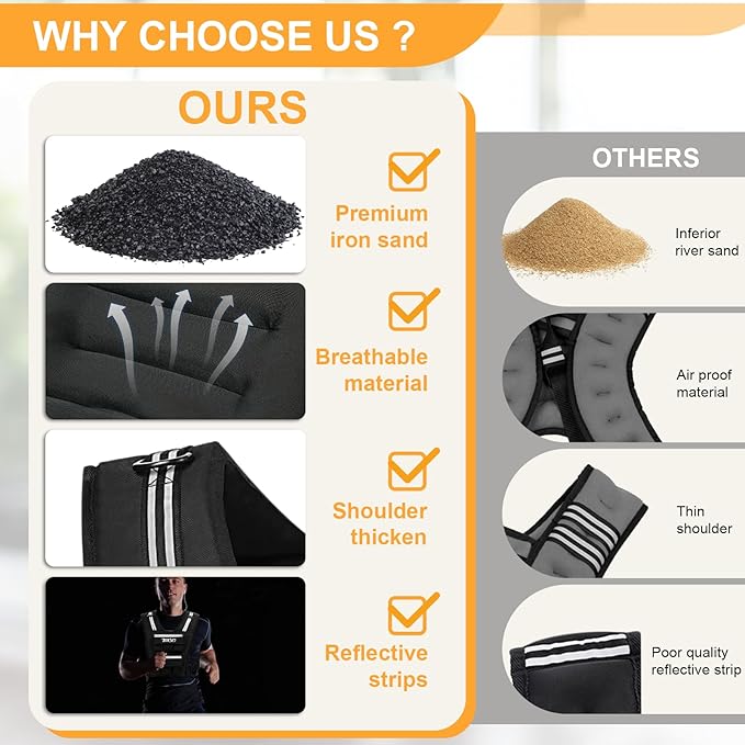 - Stay Cool & Move Freely: Our weight vest uses breathable 1000D nylon + cooling TPE foam tough enough for hardcore training, yet stops sweat buildup.Smart weight distribution hugs your body, so you train bounce-free and distraction-free. Focus purely on crushing your goals