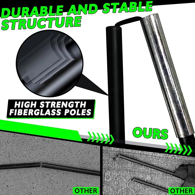 - Reinforced Fiberglass Poles - The frame uses high-strength fiberglass rods that provide excellent elasticity and toughness. They bend slightly under pressure but quickly return to their original shape, resisting breakage and maintaining the goal's firmness during intense shots.