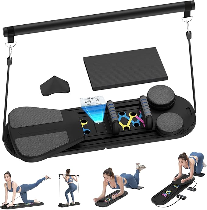 Pilates Board, Foldable Pilates Reformer Set with Timer, 8-in-1 Multi-Purpose Portable Pilates Machine for Home Workout, Pilates Reformer Kit for Full Body Workout, Abs Trainer, Core Strength