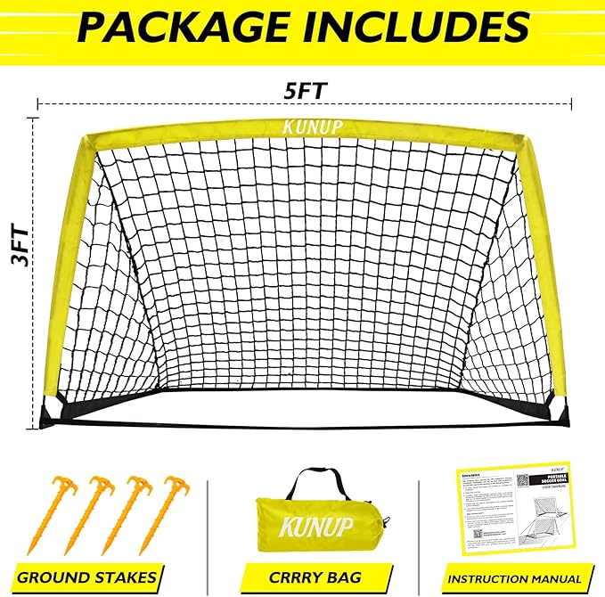 - Foldable Design for Easy Use - Set up or fold down within minutes—no complicated assembly required. Lightweight and compact, Kunup soccer goal fits easily into the included carrying bag, making it convenient to transport and store for backyard games, park practice, or family trips.