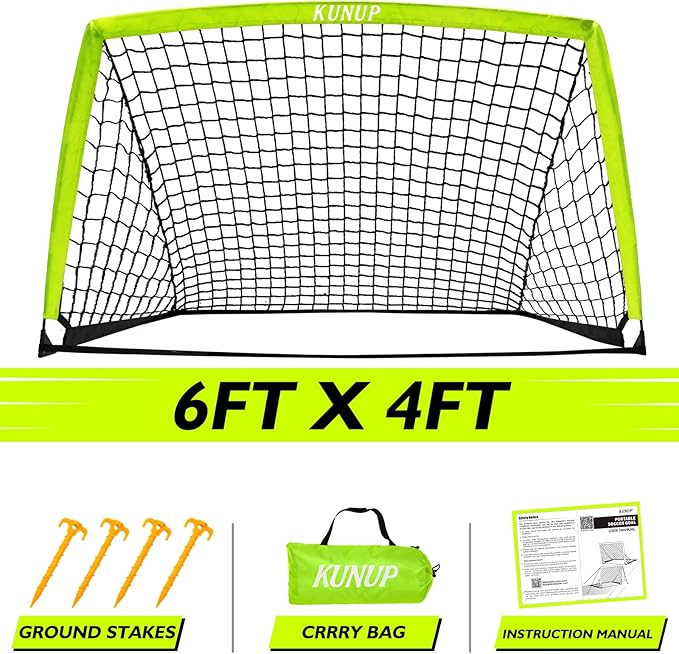- Foldable Design for Easy Use - Set up or fold down within minutes—no complicated assembly required. Lightweight and compact, Kunup soccer goal fits easily into the included carrying bag, making it convenient to transport and store for backyard games, park practice, or family trips.