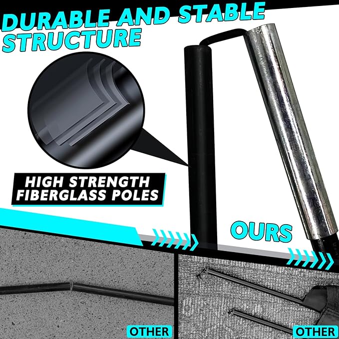 - Reinforced Fiberglass Poles - The frame uses high-strength fiberglass rods that provide excellent elasticity and toughness. They bend slightly under pressure but quickly return to their original shape, resisting breakage and maintaining the goal's firmness during intense shots.