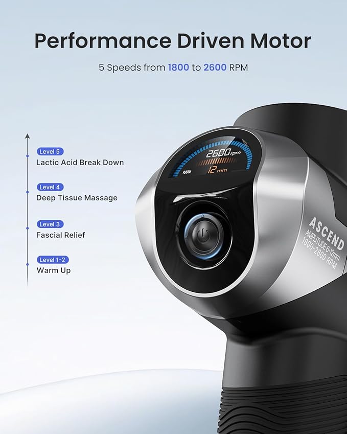 RENPHO Ascend Massage Gun Deep Tissue with 6-12mm Adjustable Amplitude, Percussion Professional Muscle Massage, Handheld Massager with Portable Carry Case for Athletes & Home Use, Color Display