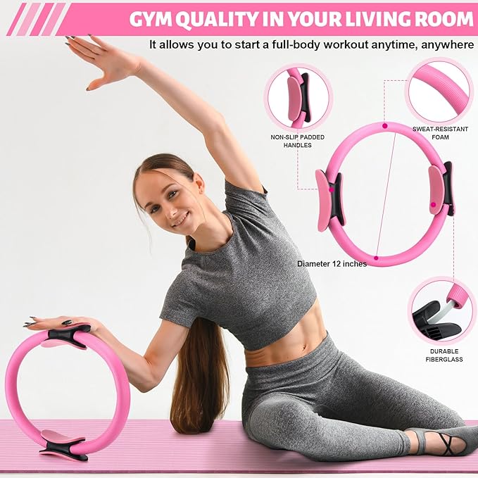 - Multi-purpose for All Ages: this 18-piece Pilates ring and ball set is ideal for yoga, Pilates, stretching and fitness training, It can meet a variety of needs, including postpartum recovery, physical therapy and pelvic floor exercises, It also helps strengthen the upper back muscles and relieve back pain in the elderly, making it a versatile choice for different users